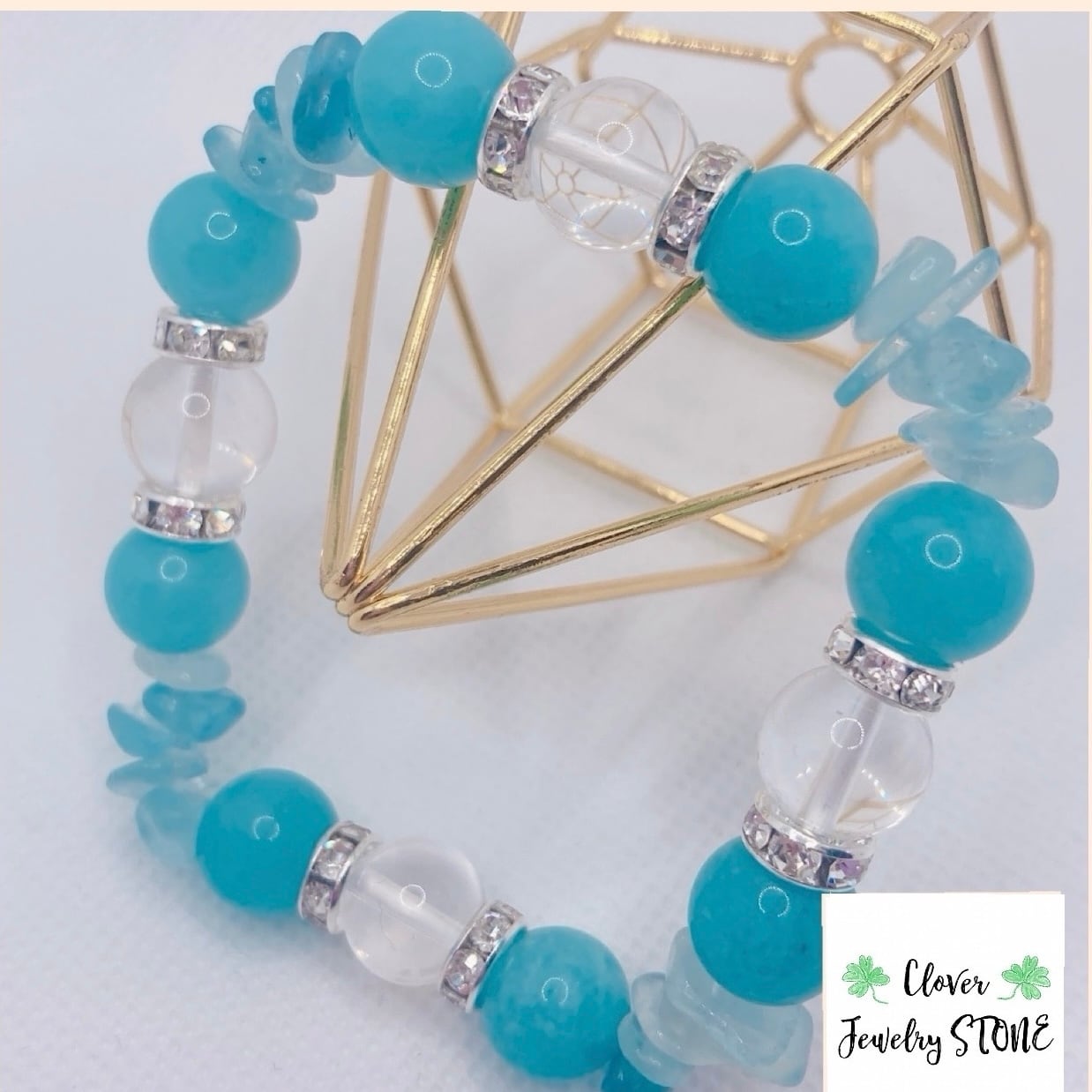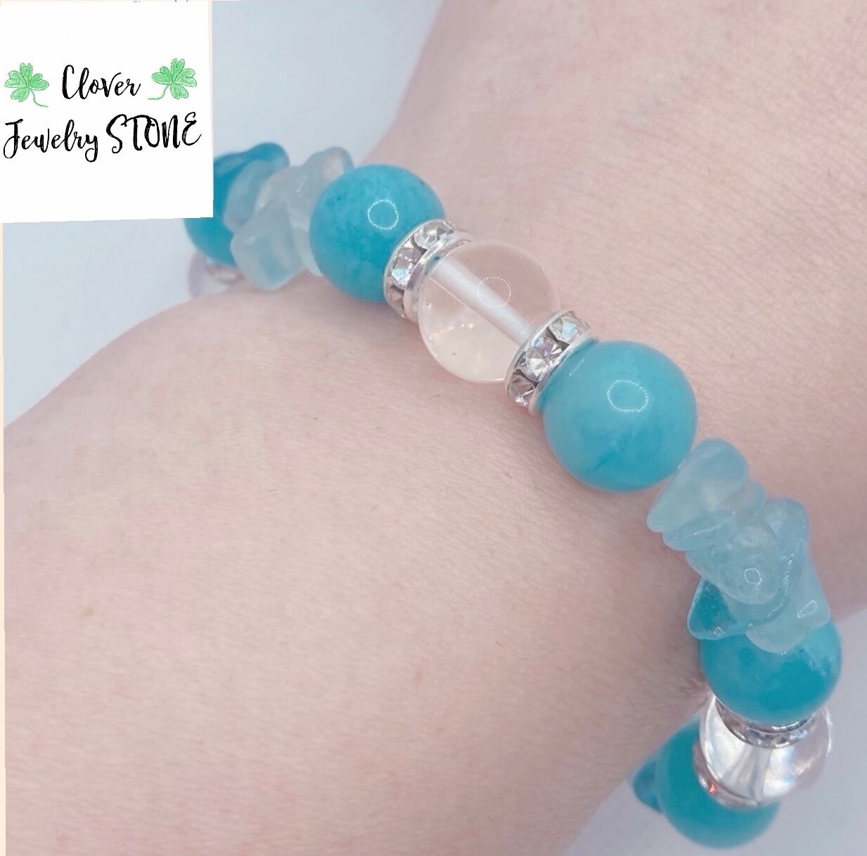 ◆癒し・愛情をもたらすブレスレット◆天然石パワーストーンブレスレット◆ブラジル産アクアマリンさざれ、アクアマリン10mm 水晶10㎜