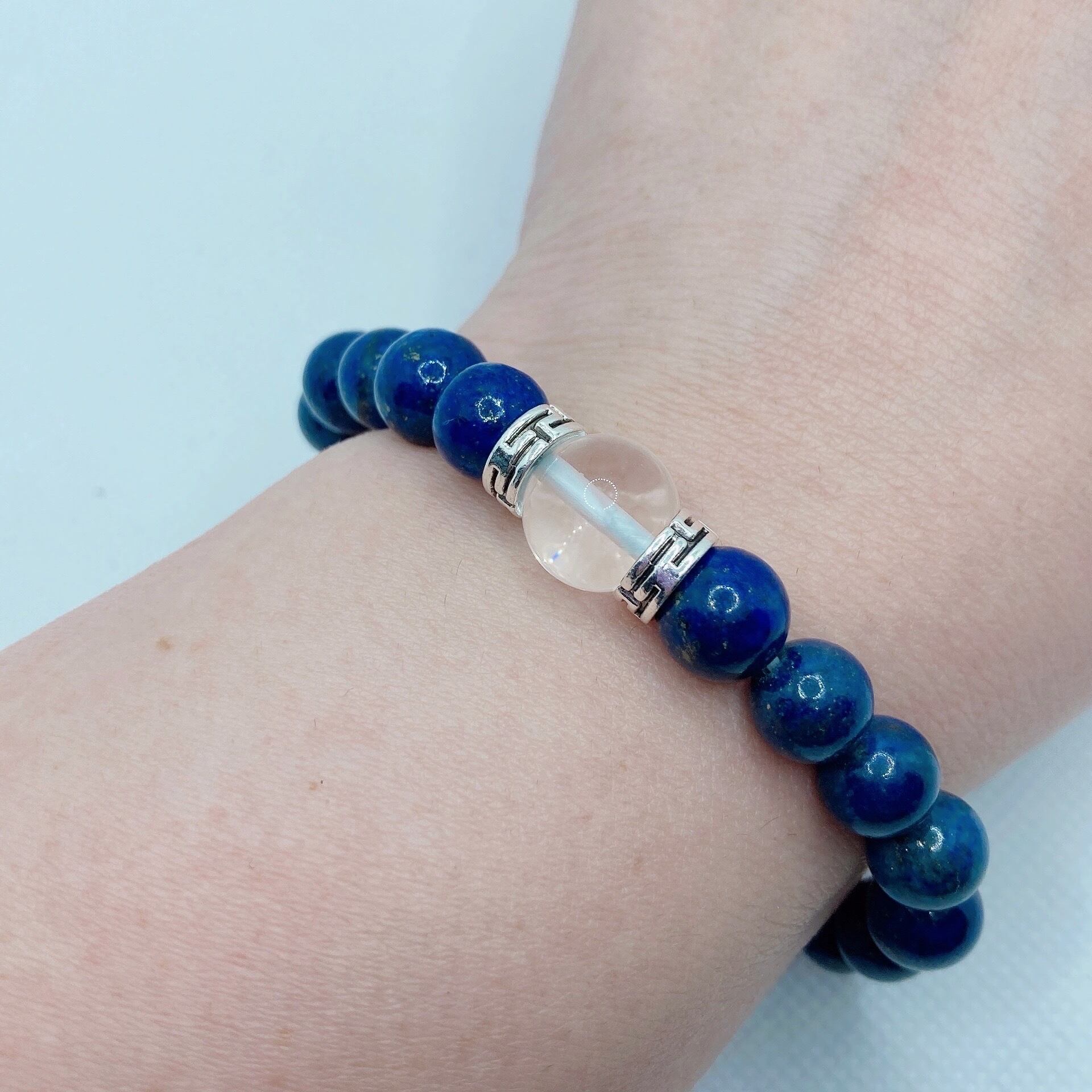 水晶は、強力な浄化エネルギーを持っており、心身のバランスを保つ役割を果たします。このブレスレットは、8mmのラピスラズリと10mmの水晶が巧みに組み合わされており、シンプルでありながら存在感があり、普段使いや特別なシーンでも活躍するアイテムです。