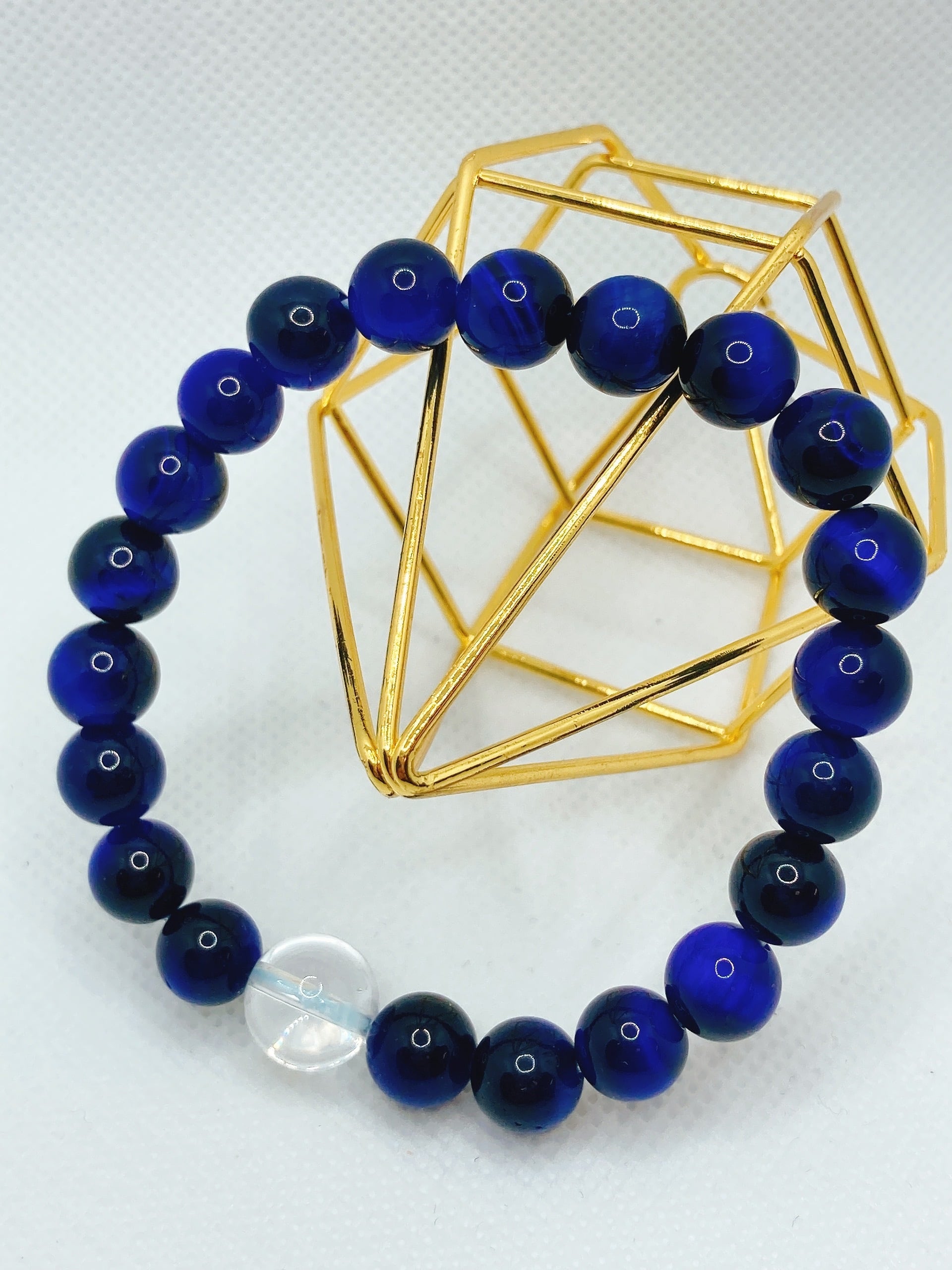 このブレスレットは、ブルータイガーアイと水晶という二つの天然石が融合した魅力的なアイテムです。ブルータイガーアイは、独特の光の反射を持ち、持ち主に金運や繁栄をもたらすサポートがあるとされます。この石は、自信と力強さを引き出し、ビジネスやお金に関する状況で積極的な行動へと導いてくれます。さらに、水晶は浄化の力が強く、全体のエネルギーを調和させ、ポジティブな波動を引き寄せます。このブレスレットを身に着けることで、あなたの日常に幸運や豊かさが訪れることでしょう。